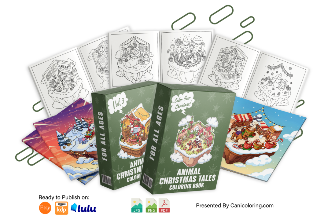 • 1280+ Coloring Pages Across 16 Unique Animal Christmas Tales Categories , 3 File Formats Included! (JPG, PNG, PDF)